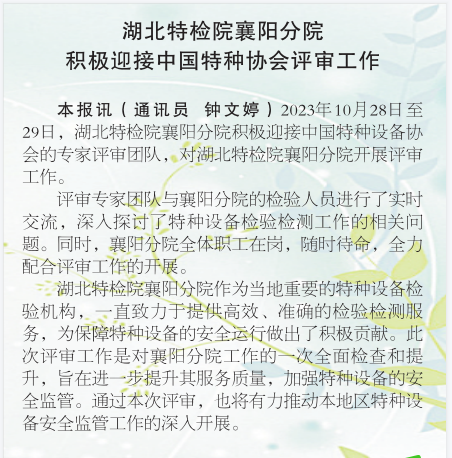 襄陽周刊(2023.灵魂摆🔞渡1㊙️10)厦门成同机电制造有限公司襄陽(yang)分院積極迎接中(zhong)國特種協會評審(shěn)🌐工作